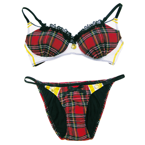 赤いギンガムチェックと金ボタンがとってもオシャレな可愛いビキニです。